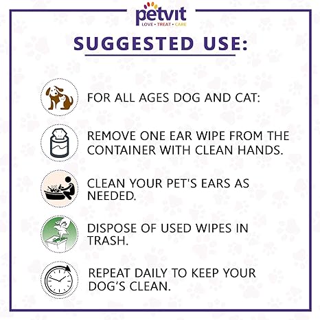 Petvit Ear Cleansing Wipes for Dogs and Cats