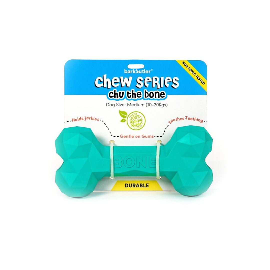 Bark butler chew series. Chew-the-bone is 100% non-toxic tested premium quality natural rubber bone, free from any harmful plastic, is the best and safe toy for dogs. It is durable and ready for a rough and tough game with your doogie, designed to aid the fun process in teething and still being gentle on the gums.