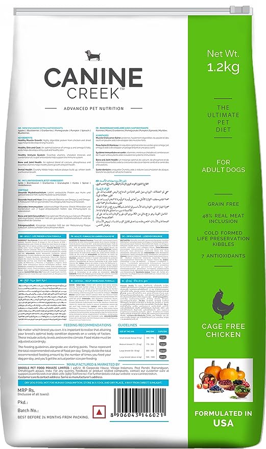 Elevate your adult dog's nutrition with Canine Creek Chicken Kibble. This non-vegetarian delight is specially crafted to support active behavior, digestive health, and immunity, all packed with the goodness of real chicken.