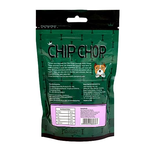 - Chip Chops Chicken Fries: Chip Chops dog treats are made from good quality meat and can be served as a daily snack to your dogs.