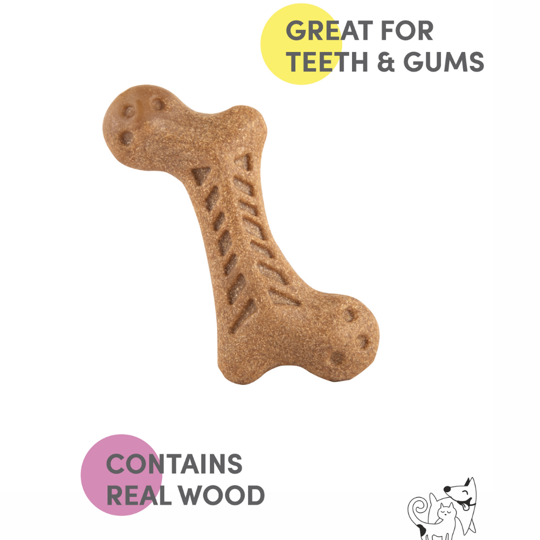 - Play fetches Real wood color, and the scent of real wood with bone shape toy demands your dog's attention and involve them in longer playtime.
