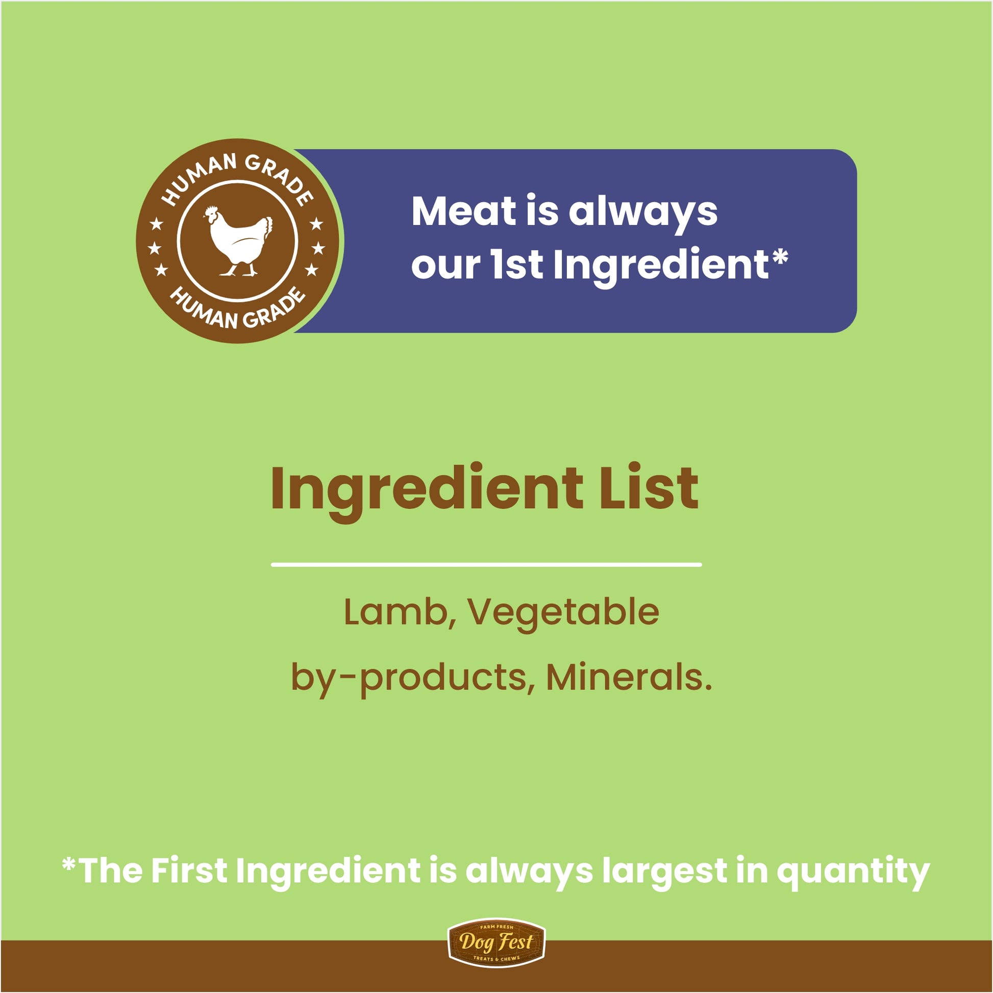 - Human-grade lamb meat sourced directly from farms as the first ingredient