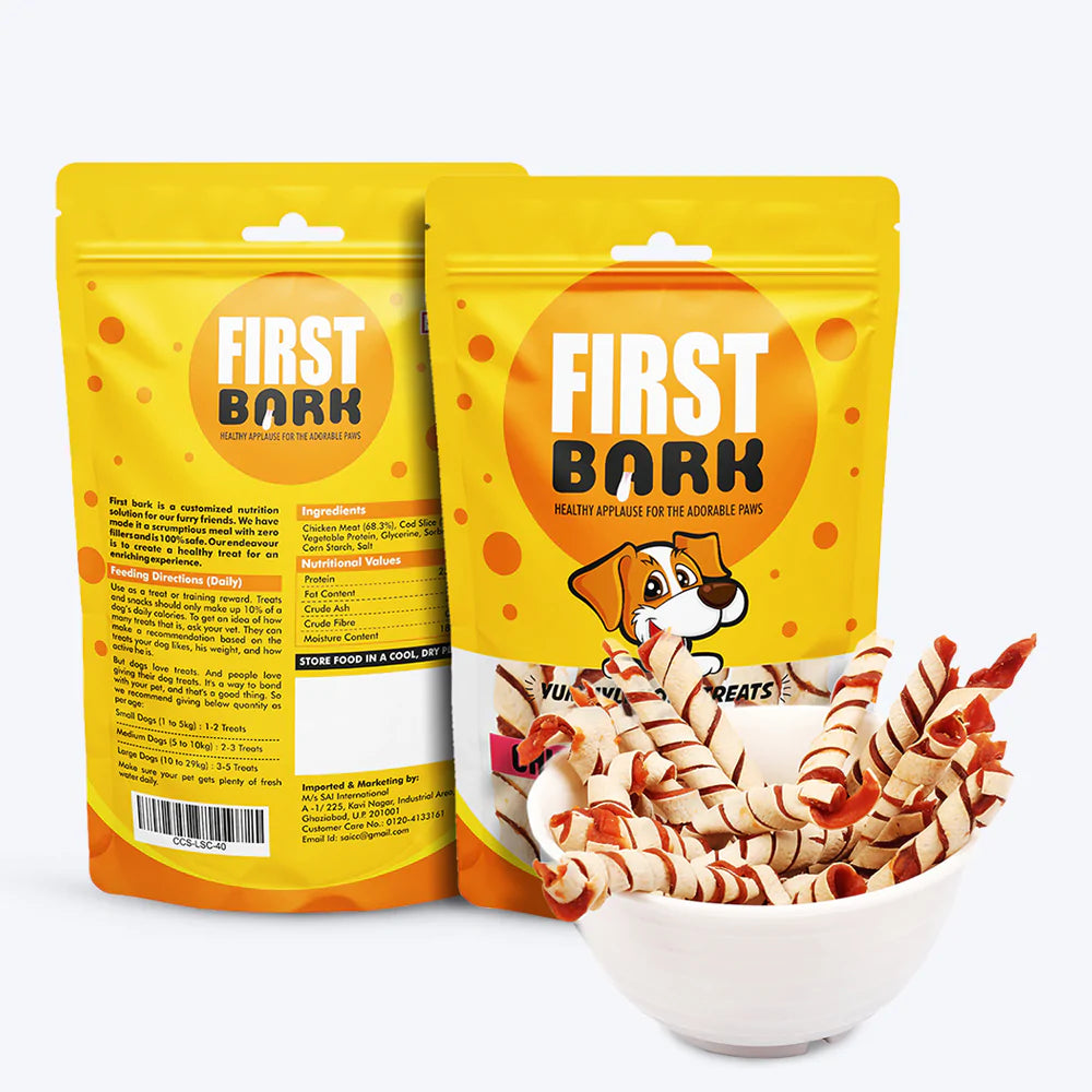 First Bark Chicken & COD Stick Delicious, Nutritious, Well-Balanced & Perfect Treat For Your Pet Chew Make Strong Teeth and Gums Ensure Good Overall Health of The Dog.