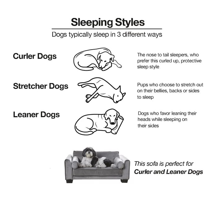 Dogs typically sleep in 3 different ways. This dog sofa is perfect for dogs who like to sleep 2 ways – curling & leaning.