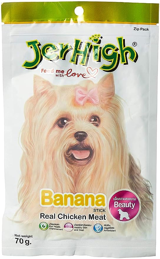Introducing Smarty Pet's Banana Flavored Stick – a delectable treat specially designed for dogs of all life stages. Crafted with care, each stick brings together the goodness of real chicken and the irresistible allure of banana flavor.