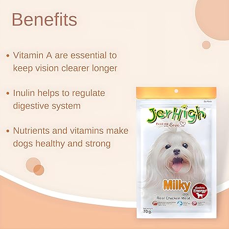 - JerHigh Milky Stick is a premium snack filled with nutrients and vitamins to make your dog healthy and strong.