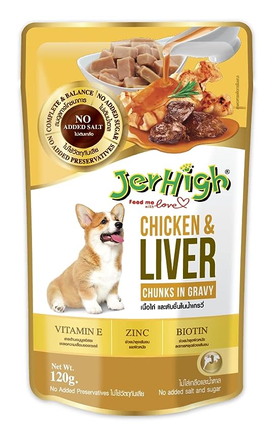Suitable for All Breeds: No matter your dog's breed or coat type, Thai Product JerHigh Chicken and Liver in Gravy is tailored to provide the best nutritional support and taste experience.
