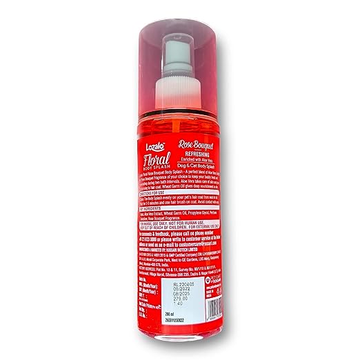 - Lozalo Floral Rose Bouquet Body Splash: A perfect blend of Aloe Vera Extract and Rose Bouquet Fragrance of your choice to keep your buddy Fresh and Rejuvenating during two bath intervals.