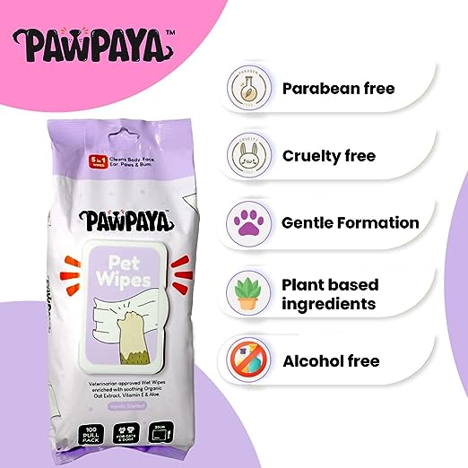 - Pawpaya Pet Wipes are designed for all dogs and cats which remove dirt and odour from your pet’s skin. Pet wet wipes are soothing for dry skin. Keep your cat or dog tidy and clean.