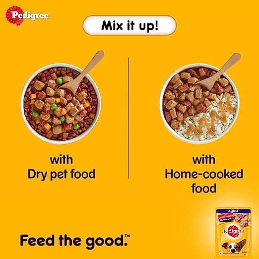 - Can be mixed with pedigree dry dog food or home-cooked meals, an ideal treat.