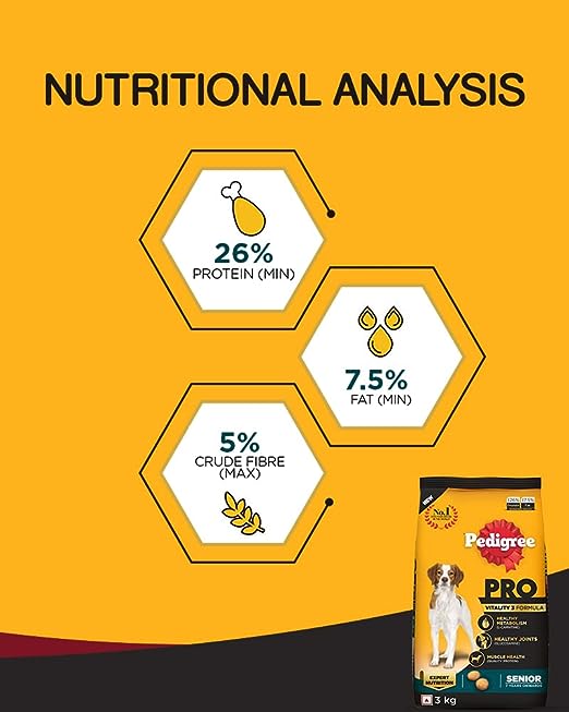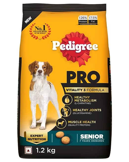 With a net quantity of 1200.0 grams per bag, you'll have enough to keep your senior dog satisfied for a while. Trust Pedigree for quality and nutrition, and give your senior dog the love and care they need.