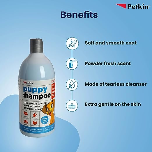 - Petkin puppy shampoo for dogs, cats, puppies & kittens.