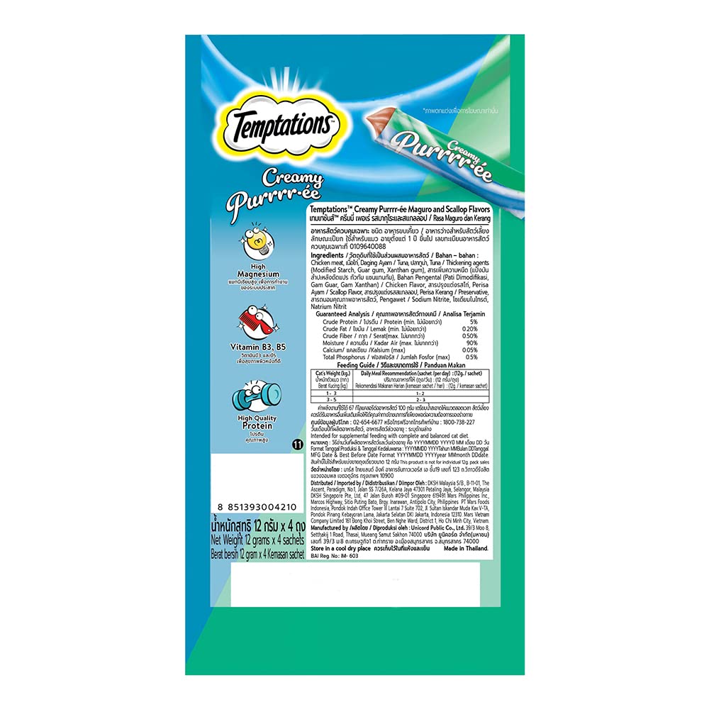 Temptations Creamy Purrrr-ee Cat Treats, Maguro and Scallop Flavors