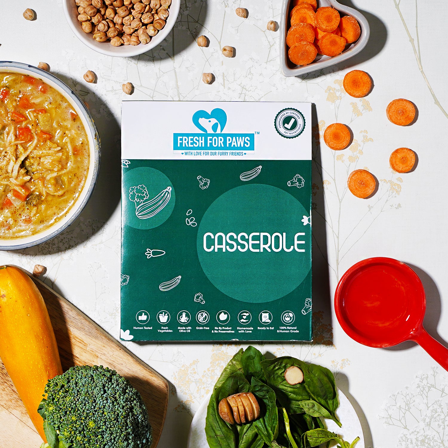 Green vegetables are just as essential for our pooches as they are for us. Fresh For Paws’ Casserole is filled with broccoli, zucchini and other healthy ingredients that your doggie will love.