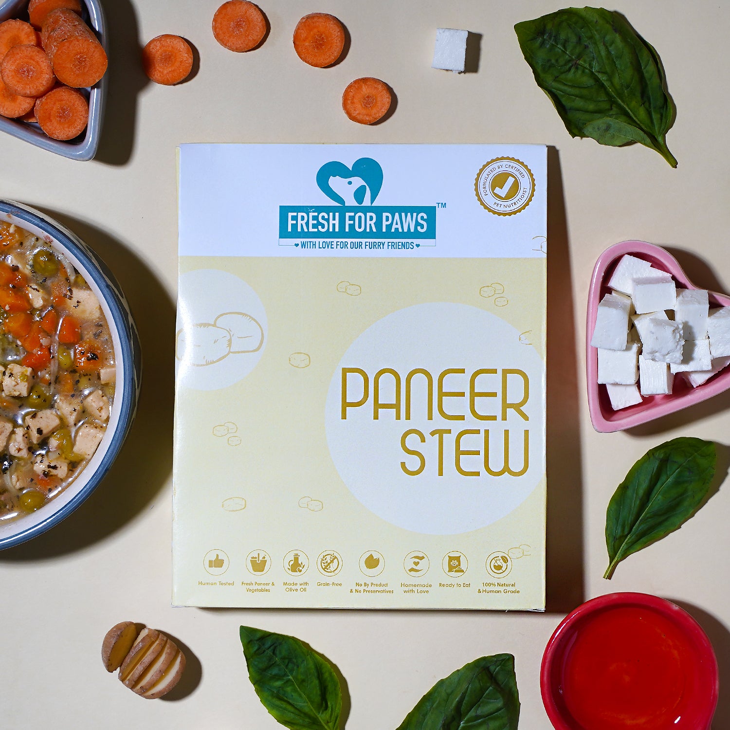 Paneer Stew is a mix of tender chunks of paneer, fresh vegetables and olive oil, put together to make sure your pets eat a fantastically healthy meal.