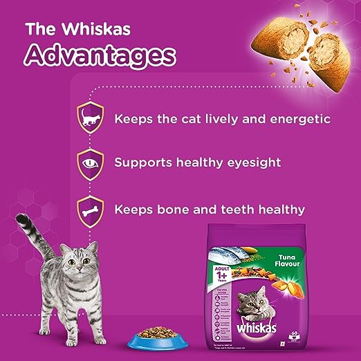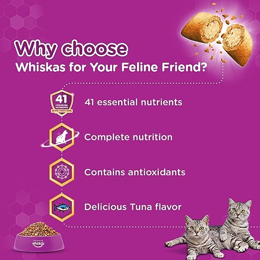 Brand Excellence: Whiskas proudly presents Tuna Flavored Dry Cat Food, tailored for your cat's non-vegetarian preferences.