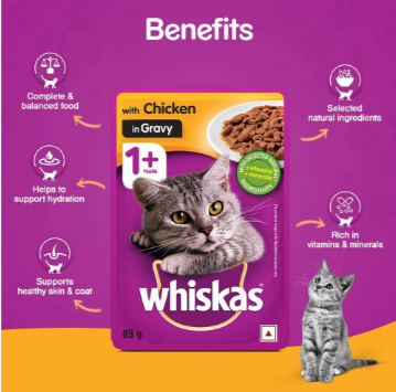 Easy Digestion: The Whiskas gravy format is gentle on your cat's digestive system, ensuring effortless consumption and proper nutrient absorption.