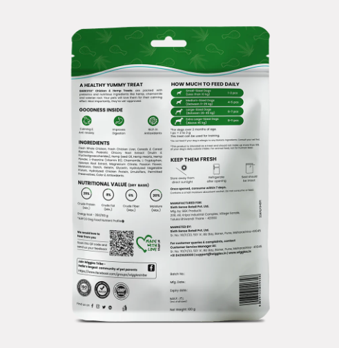 Hemp Infusion: Packed with the nourishing benefits of hemp seed oil, hemp hearts, and hemp powder, these treats offer a holistic approach to your dog's well-being.
