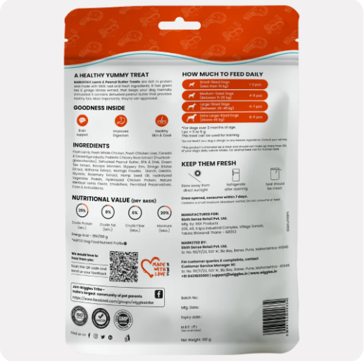 Nutrient-rich Formula: Crafted with fresh lamb, cereals, dehusked peanut butter, whole chicken, and moringa, these treats are a powerhouse of essential nutrients for your furry companion.